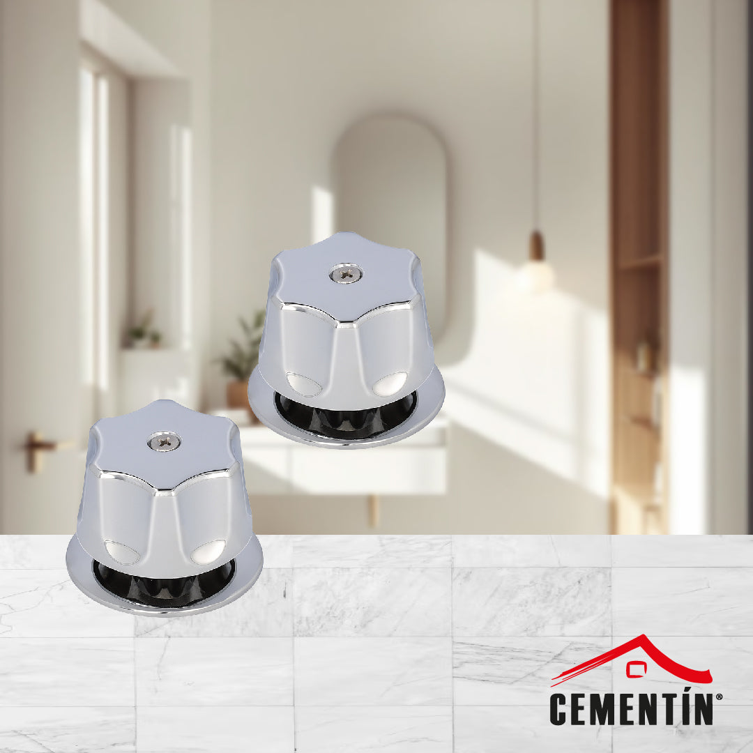 Juego de manerales grandes en elegante acabado cromo. Diseñados para ofrecer un agarre firme y cómodo. Incluye chapetón para una instalación profesional con acabados perfectos.