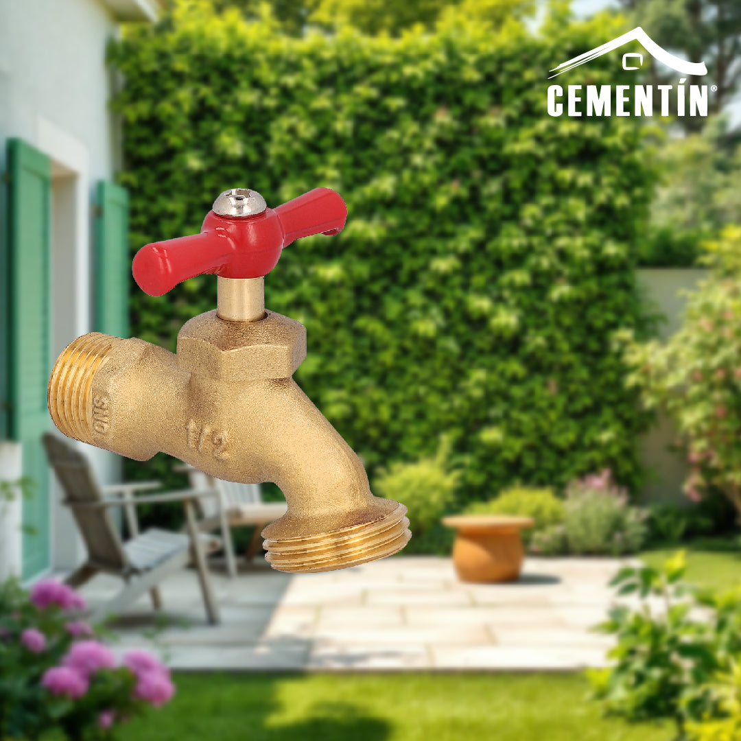 Llave de compresión con tres cuerdas diseñada para soportar presiones de 0,25 a 6 kg/cm². Incorpora cartucho de vuelta completa. Compatible con instalaciones de red 1/2" NPT. Dimensiones de 7,3 cm de largo y 6,6 cm de altura total.