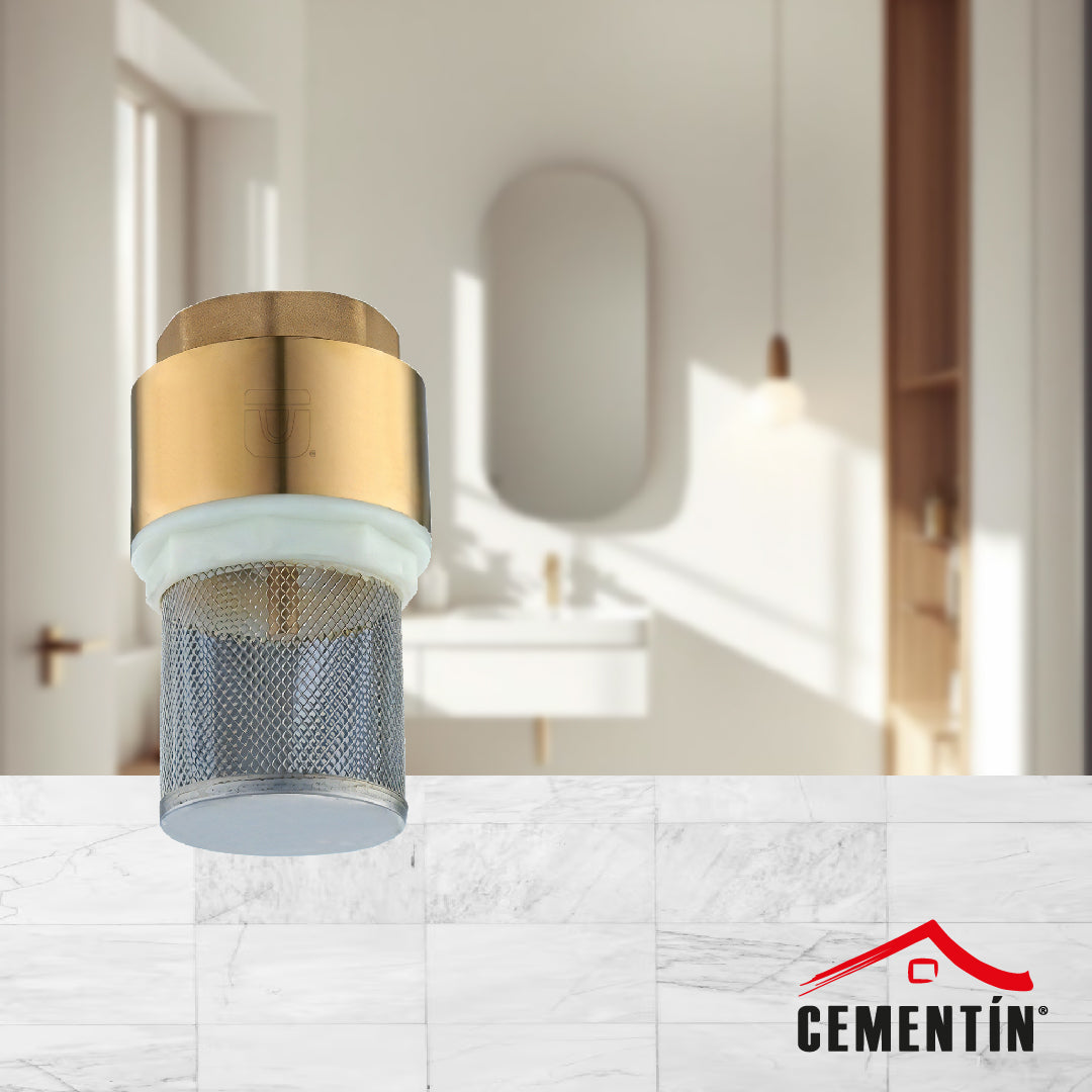 Pichancha fabricada en latón forjado con canastilla de acero inoxidable 304 con rosca NPT ofrece durabilidad superior. Soporta presiones hasta 125 PSI (8.6 bar) y opera eficientemente en temperaturas de -20°C a 100°C. Su sello de NBR (Buna-N) garantiza resistencia en diversas aplicaciones.