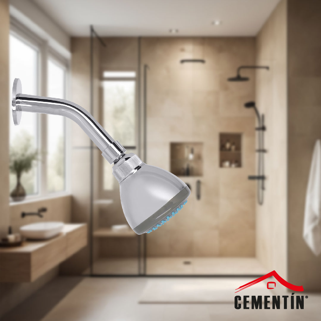 Regadera con elegante acabado cromado, incluye brazo y chapetón. Su sistema de fácil limpieza garantiza un mantenimiento sencillo y un rendimiento óptimo con baja presión de agua.