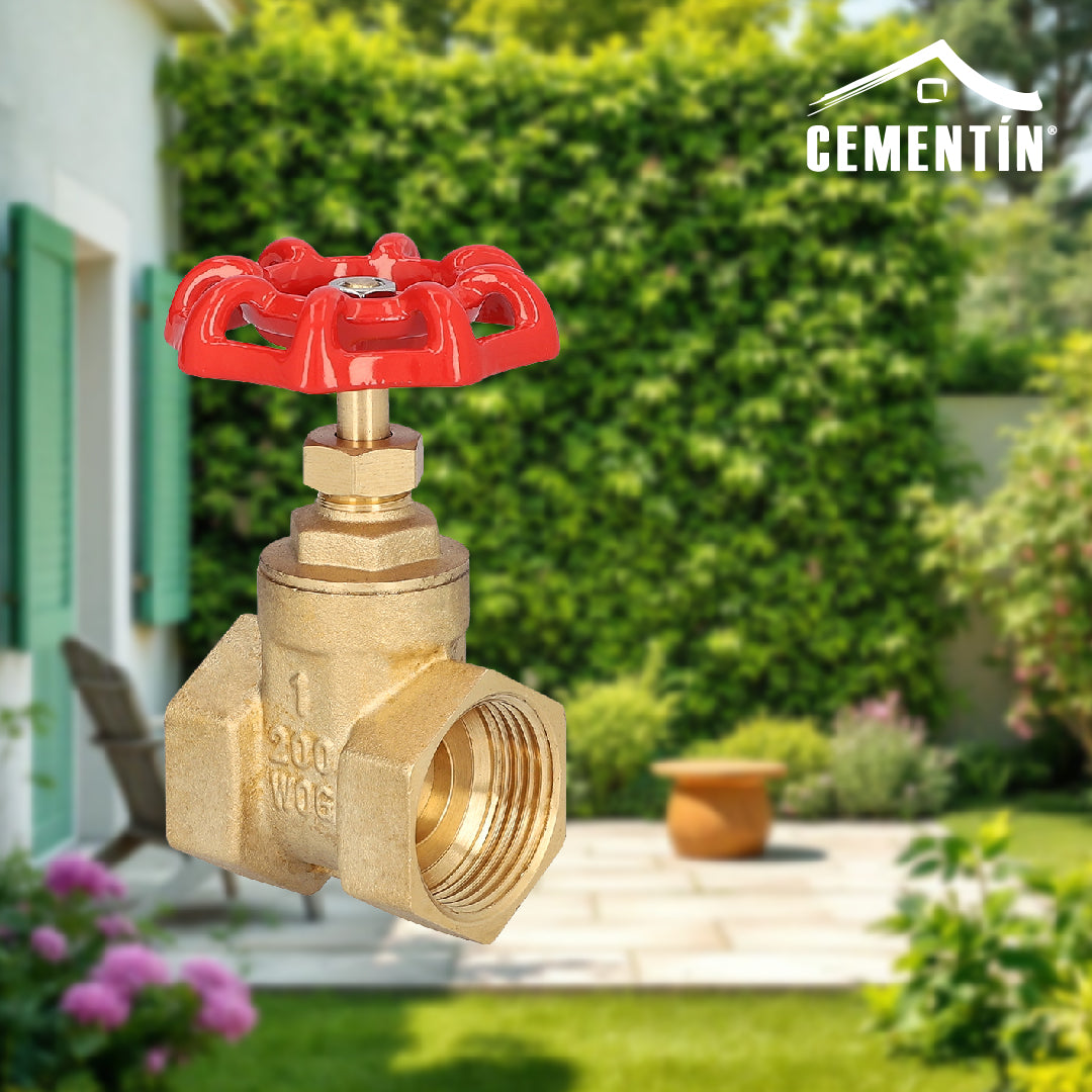 Válvula de compuerta roscable diseñada para soportar presiones de hasta 150 WOG. Cuenta con un maneral ergonómico de 5.5 cm de diámetro que facilita su operación. Tiene un cuerpo de 4 cm de largo y altura total de 8 cm.